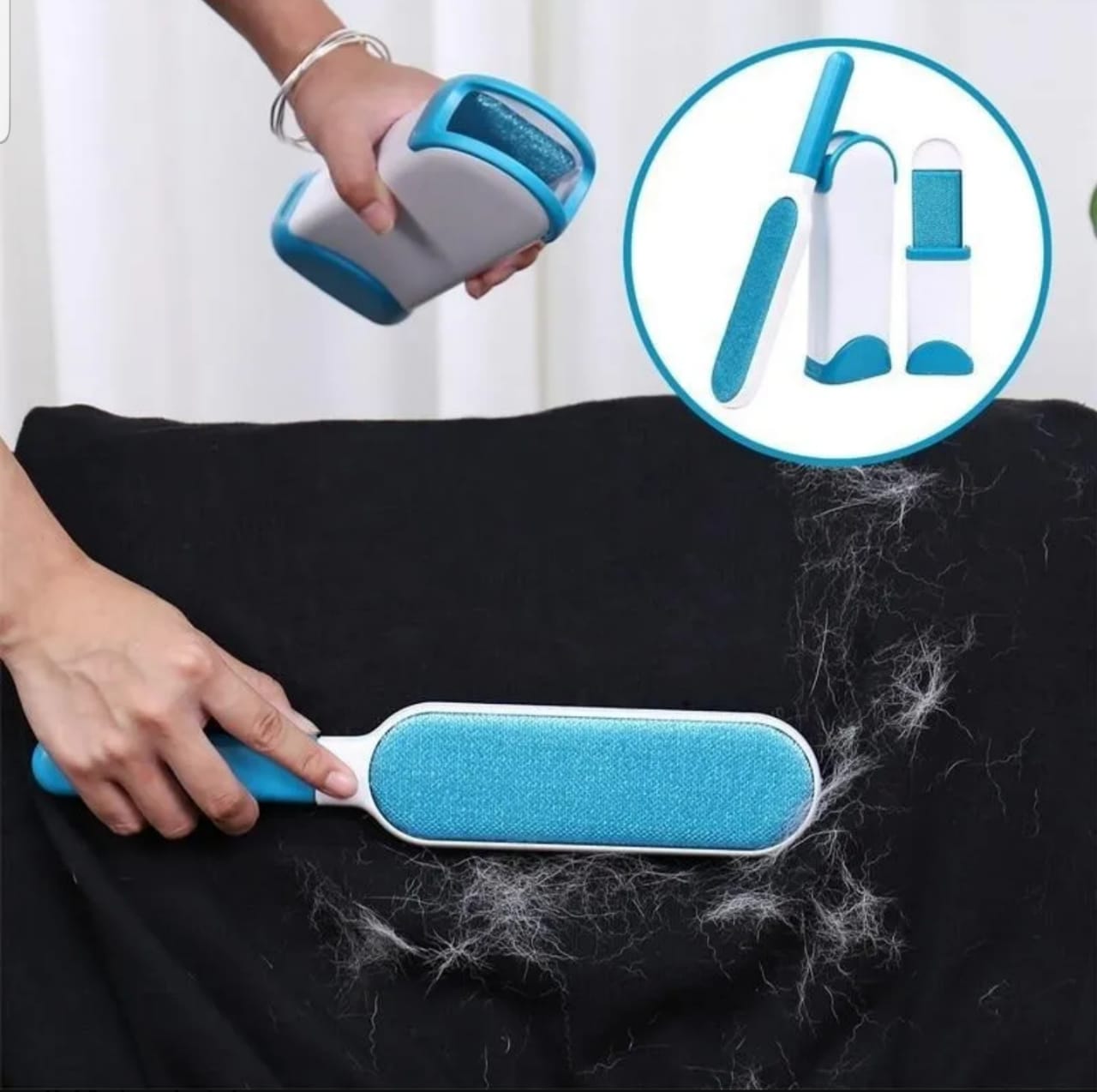 Retira Facilmente la Pelusa en tus prendas de ropa, sala o áreas de tu casa compestas por tela y en tus mascotas que expiden demasiado pelo.