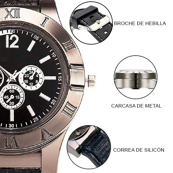 - Útil función adicional de encendedor: Además de ser un reloj bastante atractivo, este dispositivo también presenta un muy útil panel que funciona como encendedor. Solo necesitas deslizar la carátula del mismo, para acceder al panel que te permite encender de manera sencilla tu cigarrillo.
